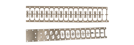 Der Metallstreifen bleibt angeschlossen, wenn er von Station zu Station bewegt wird. So bleibt die Ausrichtung eng. Dieses Design eignet sich gut für kleine bis mittelgroße Teile, die keine tiefe Form benötigen. Progressive Stanze sind für Geschwindigkeit und Präzision über lange Läufe eingerichtet.